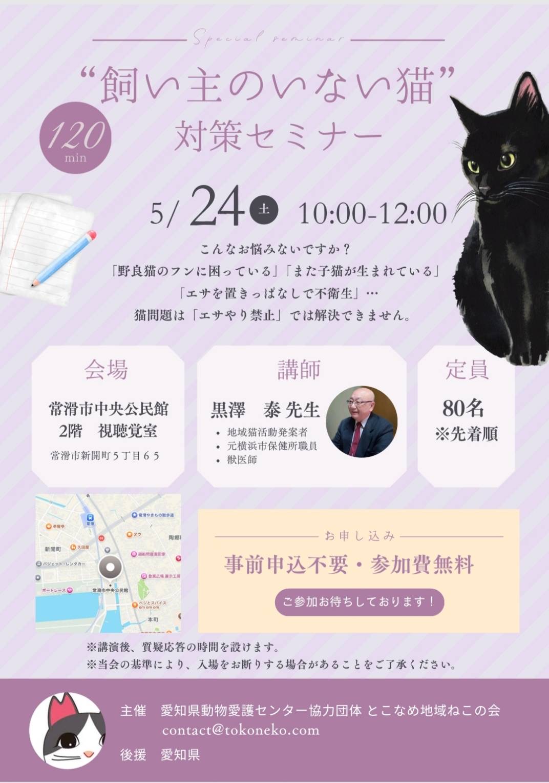 とこなめ地域ねこの会さんが、5月にセミナーを開催されます。